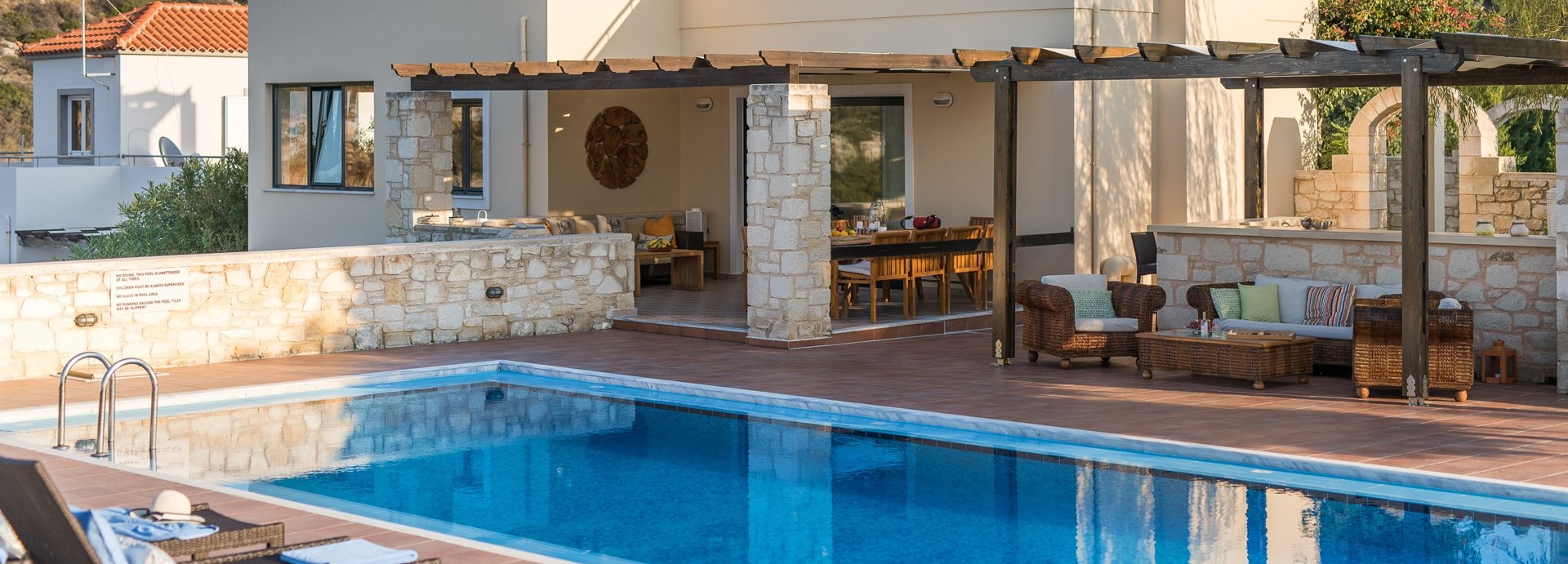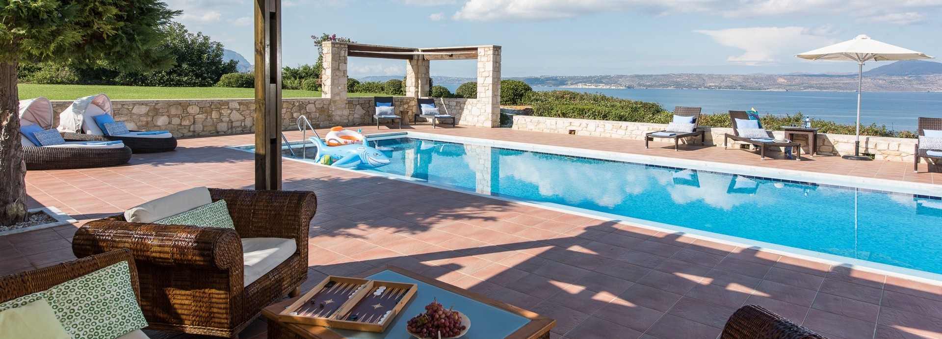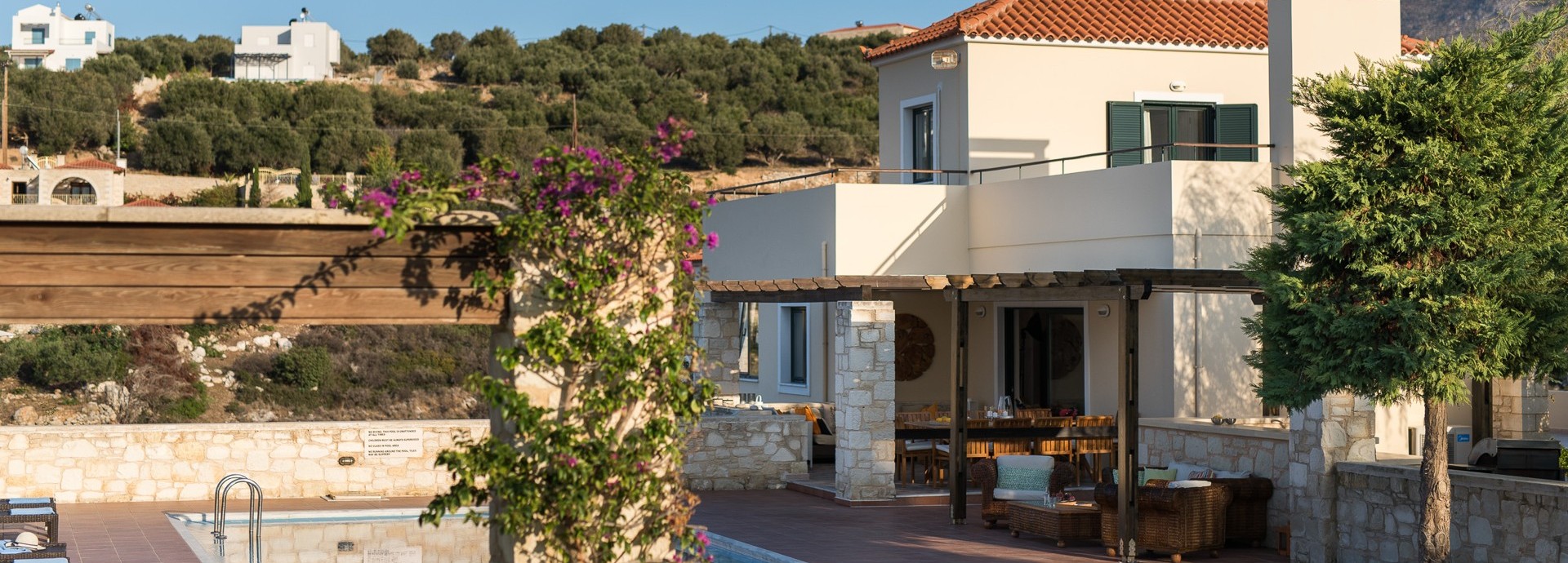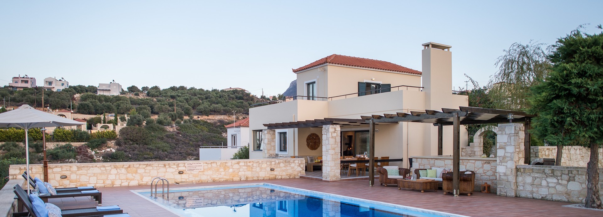 A beautiful Villa with excellent outdoor facilities and swimming pool and stunning views. Great location for the local village of Plaka with two supermarkets and restaurants. A short walk down the hill to Almyrida, which has an array of restaurants and beach. The crew could not be more hospitable and helpful. Ideal for a holiday with family or friends.